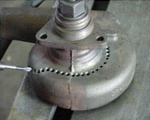 弊社が受注する金属クラックの補修は、鋳物、特殊鋼等溶接が難しい物、軸部位、分解するのに手間がかかる物、熱による経年変化で問題が起きる物、購入するには納期が長い物、溶接等による歪で修理後の製品精度に不安がある物、持ち運びが困難なものが多い。