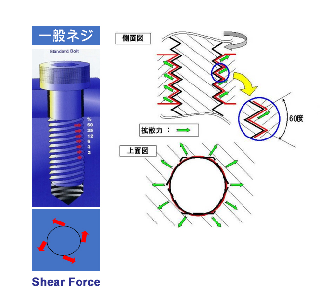 ◆ 一般ネジは締め込むと拡散力が働く